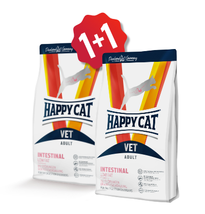 K jednomu kusu Happy Cat VET 300 g (Intestinal 300 g) nyní získáte jedno stejné balení krmiva navíc.