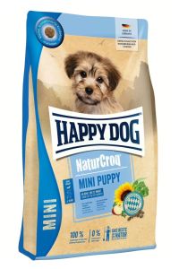 Kompletní štěněčí krmivo Happy Dog NaturCroq Puppy je obzvlášť vyváženou plnohodnotnou výživou pro štěňátka od 1. měsíce věku. Je ideální potravou pro zdravé a bezproblémové krmení štěňat všech malých plemen psů do hmotnosti 10 kg v dospělosti. Speciální receptura těchto výživných granulí přináší 78 % živočišných proteinů (z celkového obsahu proteinů) a využívá převážně regionální bavorské suroviny, jako je drůbež, hovězí a ryby. Celozrnné obiloviny jsou velmi důležitým zdrojem vlákniny pro podporu střevní činnosti a zdravého trávení. Krmivo poskytuje všechny důležité vitamíny, stopové prvky a minerální látky, které jsou nezbytné pro optimální vývoj vašeho štěňátka. Vápník a vitamín D3 jsou zodpovědné za pevnost a optimální vývoj kostí. Cenné nenasycené mastné kyseliny zajistí, že vaše štěně vytvoří neporušenou zdravou kožní bariéru a získá lesklou srst. Lahodná receptura je zušlechtěna cennými místními bylinkami, které poskytují mnoho cenných přírodních živin pro imunitu a celkové zdraví. Toto vyvážené suché krmivo je optimálně přizpůsobeno potřebám štěňat od 1. měsíce a podporuje jejich optimální vývoj až do dosažení tělesné dospělosti.