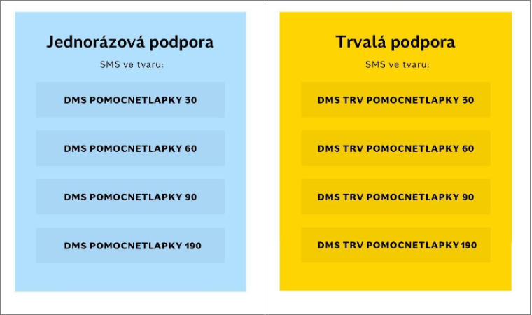 Zašlete dárcovskou SMS ve tvaru DMS POMOCNETLAPKY na tel. číslo 87777.