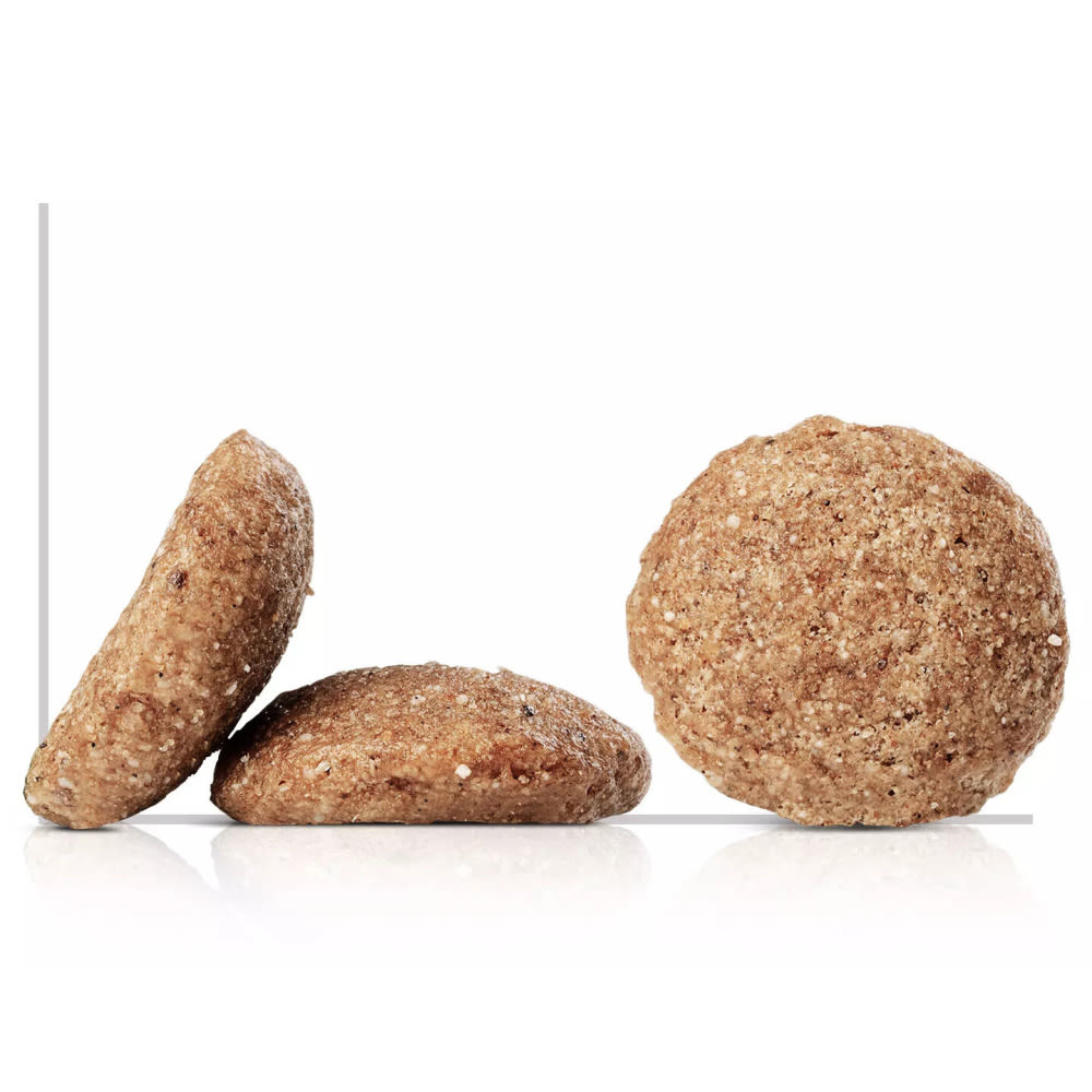 ryža (40 %), ryžový proteín*, hrachové vločky (7,5 %), slnečnicový olej, hydrolyzovaný proteín protein (z mliečnych výrobkov), lignocelulóza, cukrovarské rezky* (odcukrené), kvasnice*, dihydrogénfosforečnan vápenatý, repkový olej, jablková dreň*, uhličitan vápenatý, chlorid sodný, vajcia*, čakanka*, brusnice (0,1 %), kokos (0,1 %), kurkuma (0,05 %); * sušené.